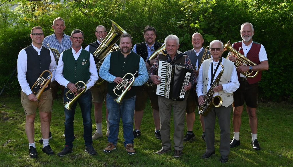 Die Schlichter Kirwamusik Spielt mit wechselnder Besetzung in Tracht.